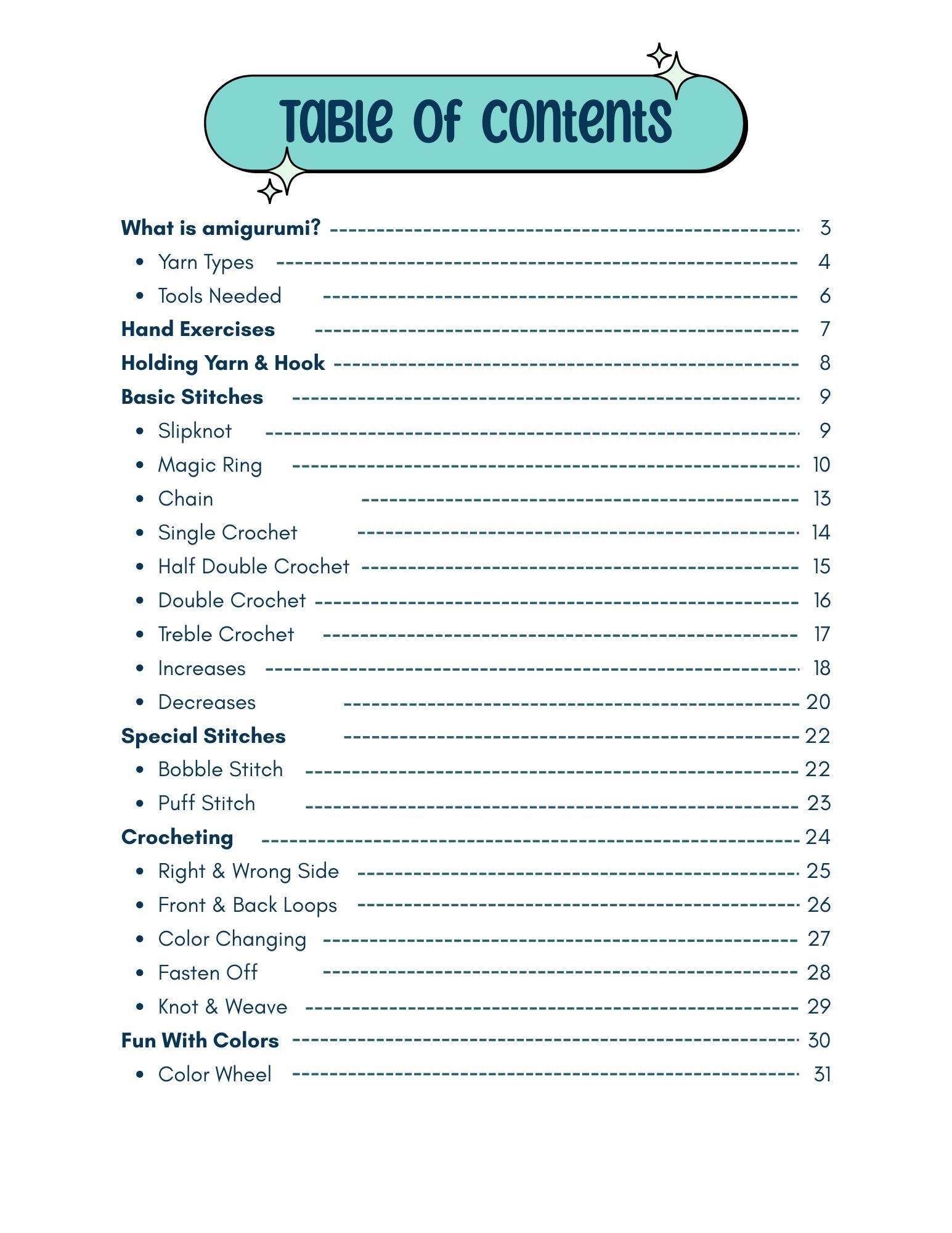 This beginner-friendly eBook will take you from your very first slipknot to creating adorable plushies you’ll love to hug (and show off!). With 35+ pages of clear instructions, step-by-step illustrations, and fun activities, crochet has never been this approachable — or this cute.