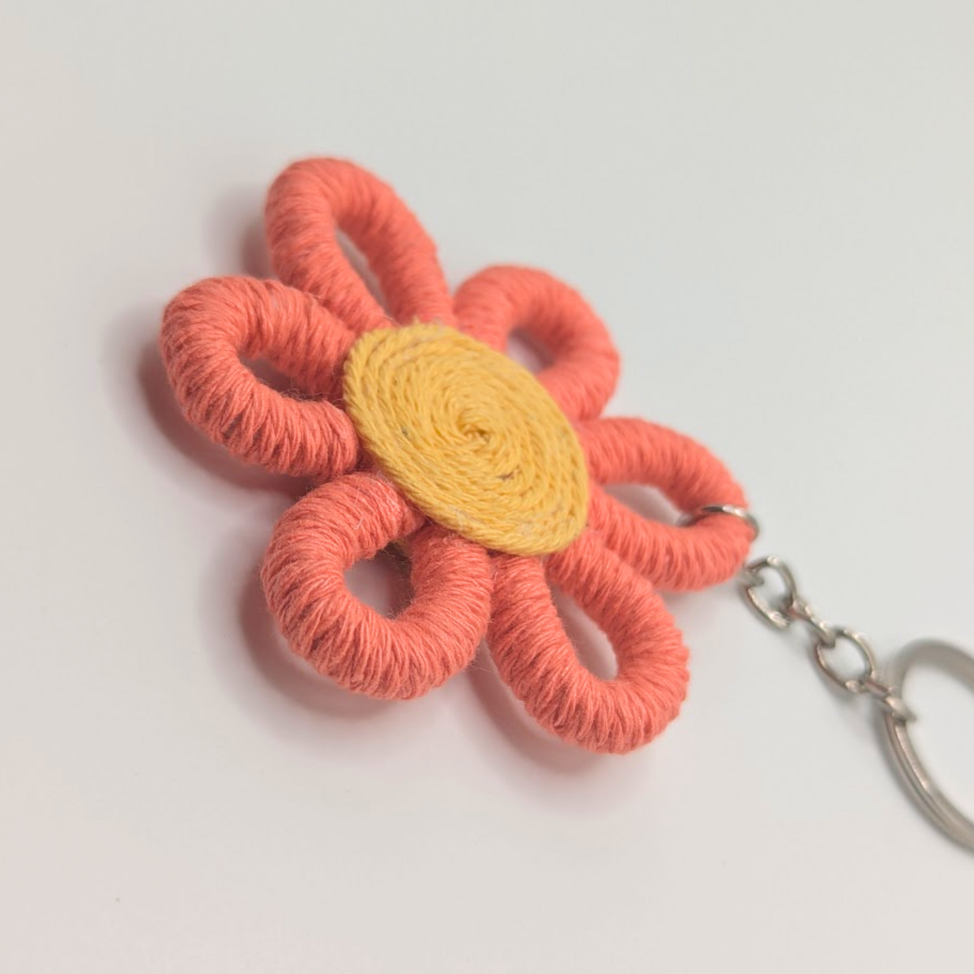 Macrame Flower Keychain - Coral