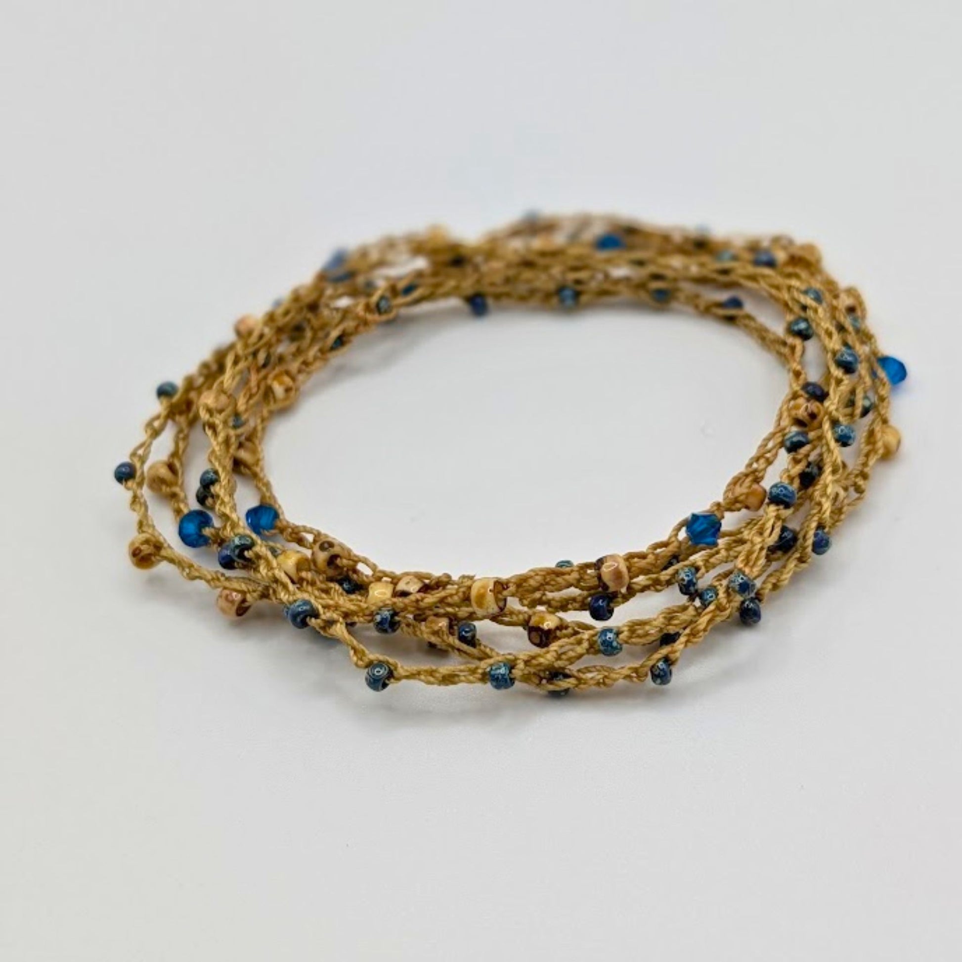 Crocheted to give the look of fishing cast over a glimmer ocean, Precoisa Czech Bicone act like diamonds across the sea, glistening in the sun hugged by Toho imported seed beads.