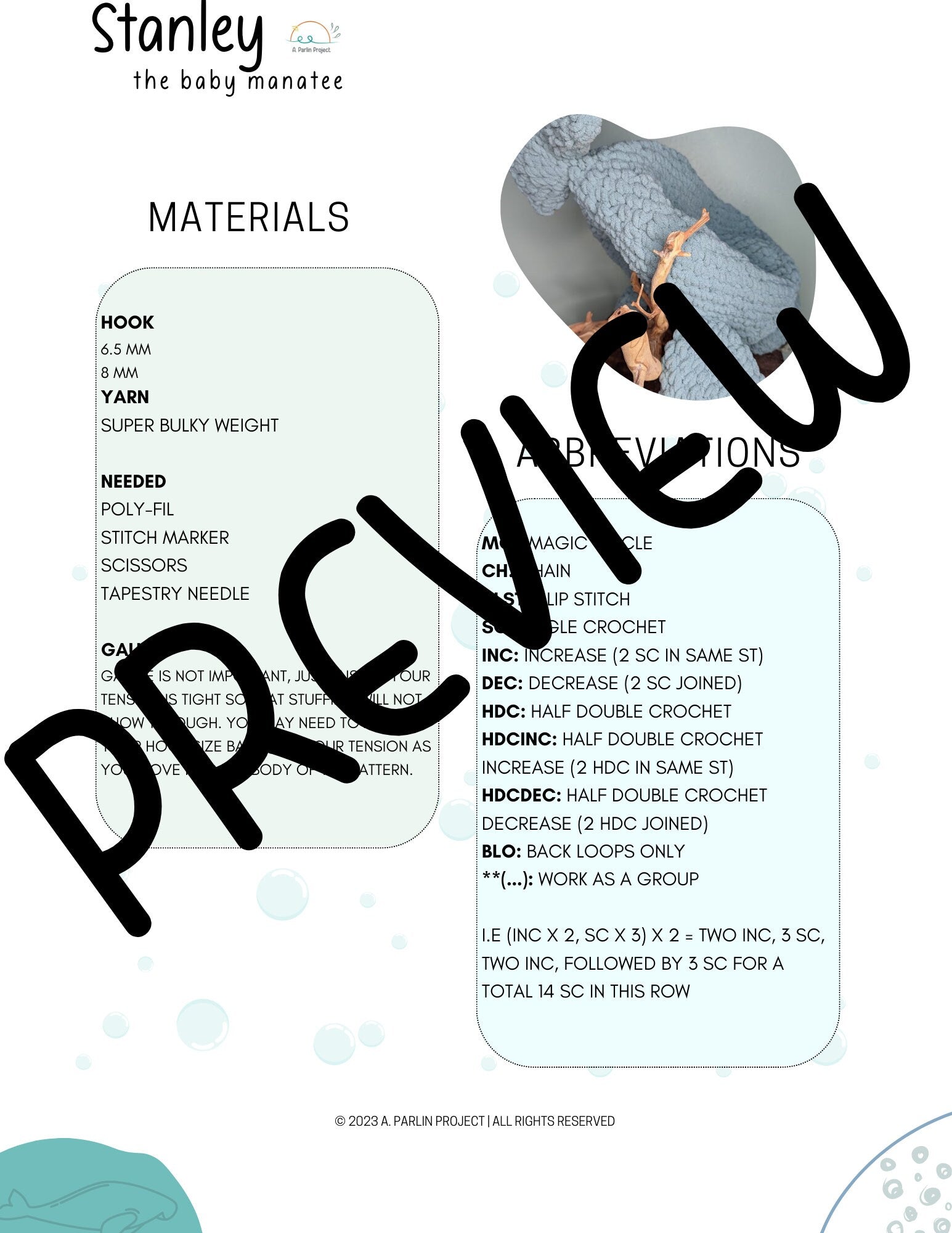 This listing is for an Instant Download PDF PATTERN for Stanley the manatee snuggler. - Designed by A. Parlin Project, inspired by my daughter and her love for all things cute.